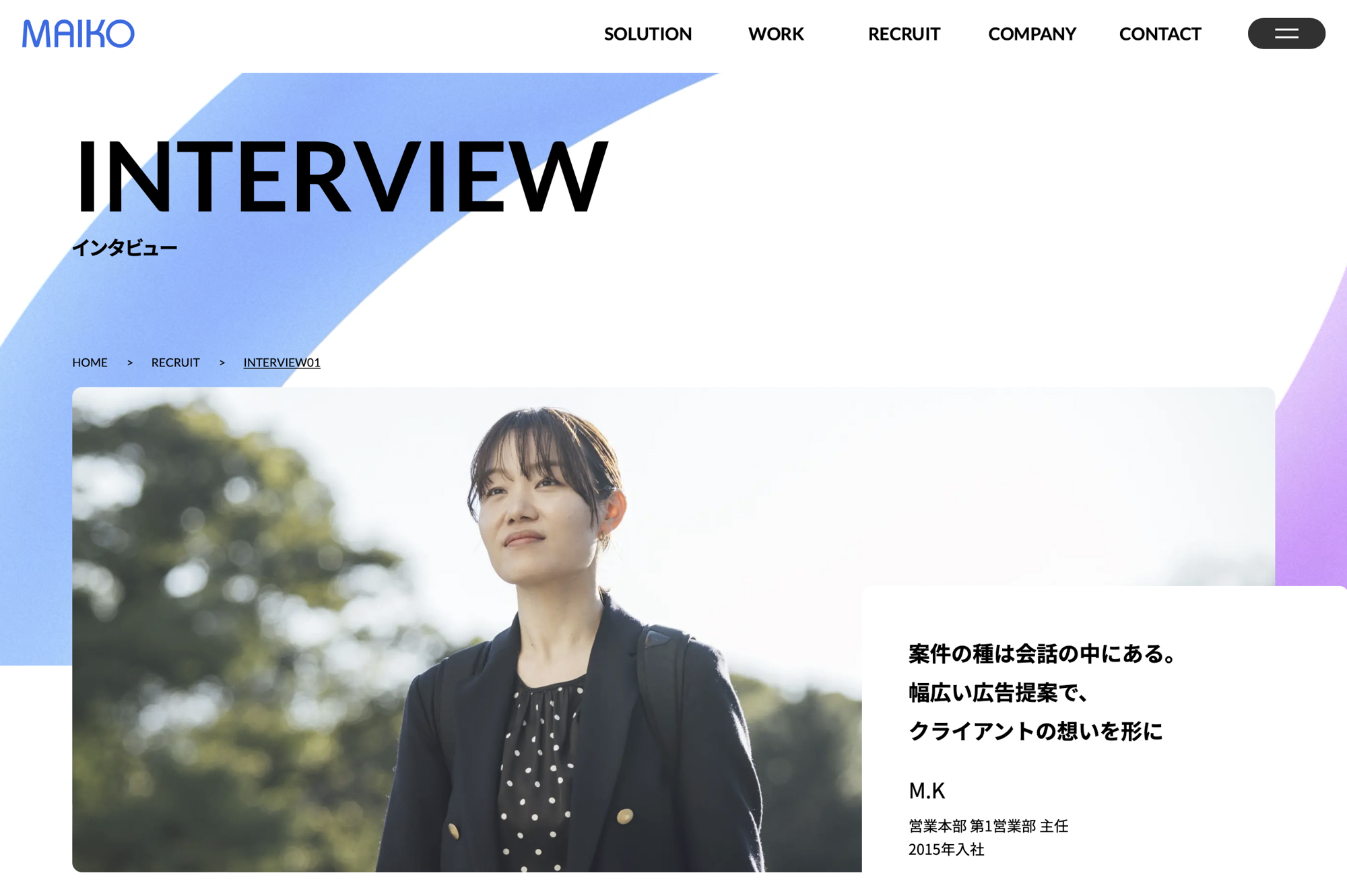 MAIKO Webサイト 2026 photo:IKENOYA Yuka https://www.maiko.co.jp/recruit/